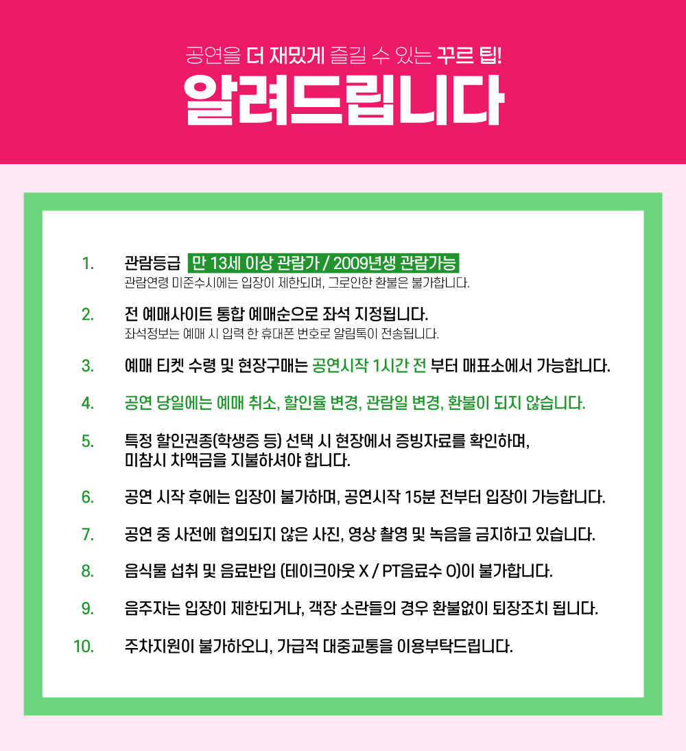 ※ 단체 70인 이상 평일 특별공연 편성가능