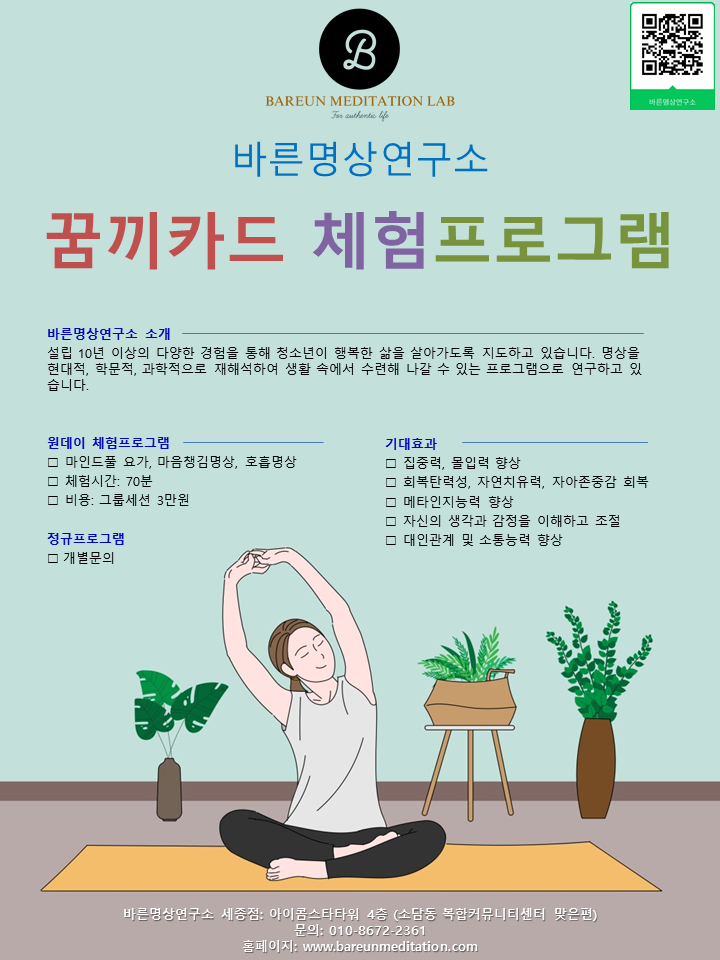 의식 주체로서 나와 나의 생각 감정 기억 느낌 등 대상을 분리하여 알아차림으로써 정보와 에너지의 흐름을 조절하여 스트레스 완화, 정서함양 훈련
